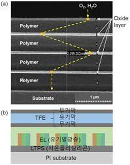 일반적으로 Passivation Layer를 쌓을 때는 수분과 산소의 침투를 막는 목적으로 사용됩니다. 하지만 얇은 박막을 무작정 여러 층 쌓는다고 해서 해결되는 문제가 아닙니다. 봉지공정에서 사용되는 Thin Film은 여러 유무기층으로 이루어져 있고, 재료의 특성과 하부막 과의 궁합 그리고 디스플레이의 특성까지 모두 고려해야 합니다. 특히 폴더블이나 롤러블 디스플레이에서는 봉지공정 기술이 점점 더 까다로워지고 있습니다.