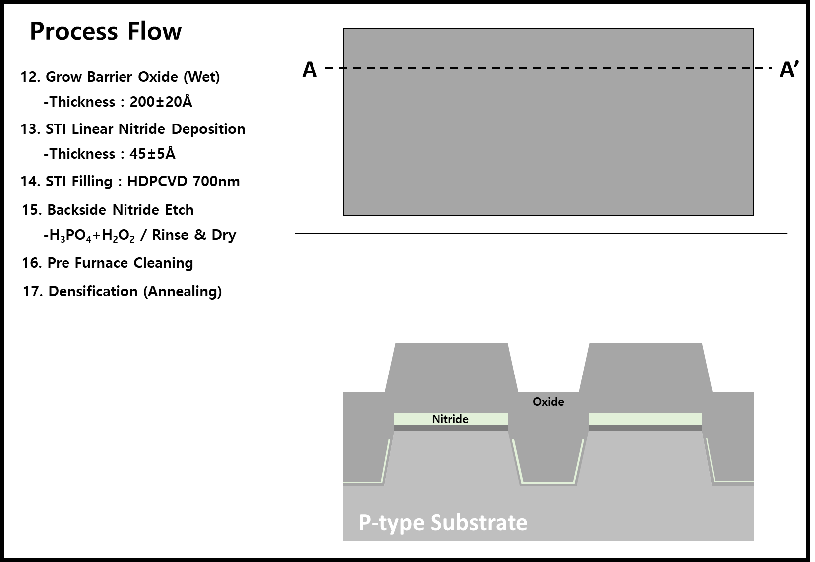 그래서 여러분들이 Process Flow를 직접 그려보면서 Nitride가 중간 중간 위치하는 것을 보실 수 있습니다.