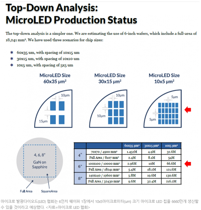 마이크로 LED 칩 가격 상한은 10달러 수준.. 상용화 걸림돌..