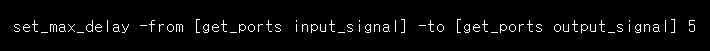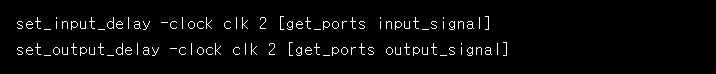 - Port 제약 조건 : 'set_input_delay' 및 'set_output_delay' 명령어를 통해 입출력 지연을 설정함.